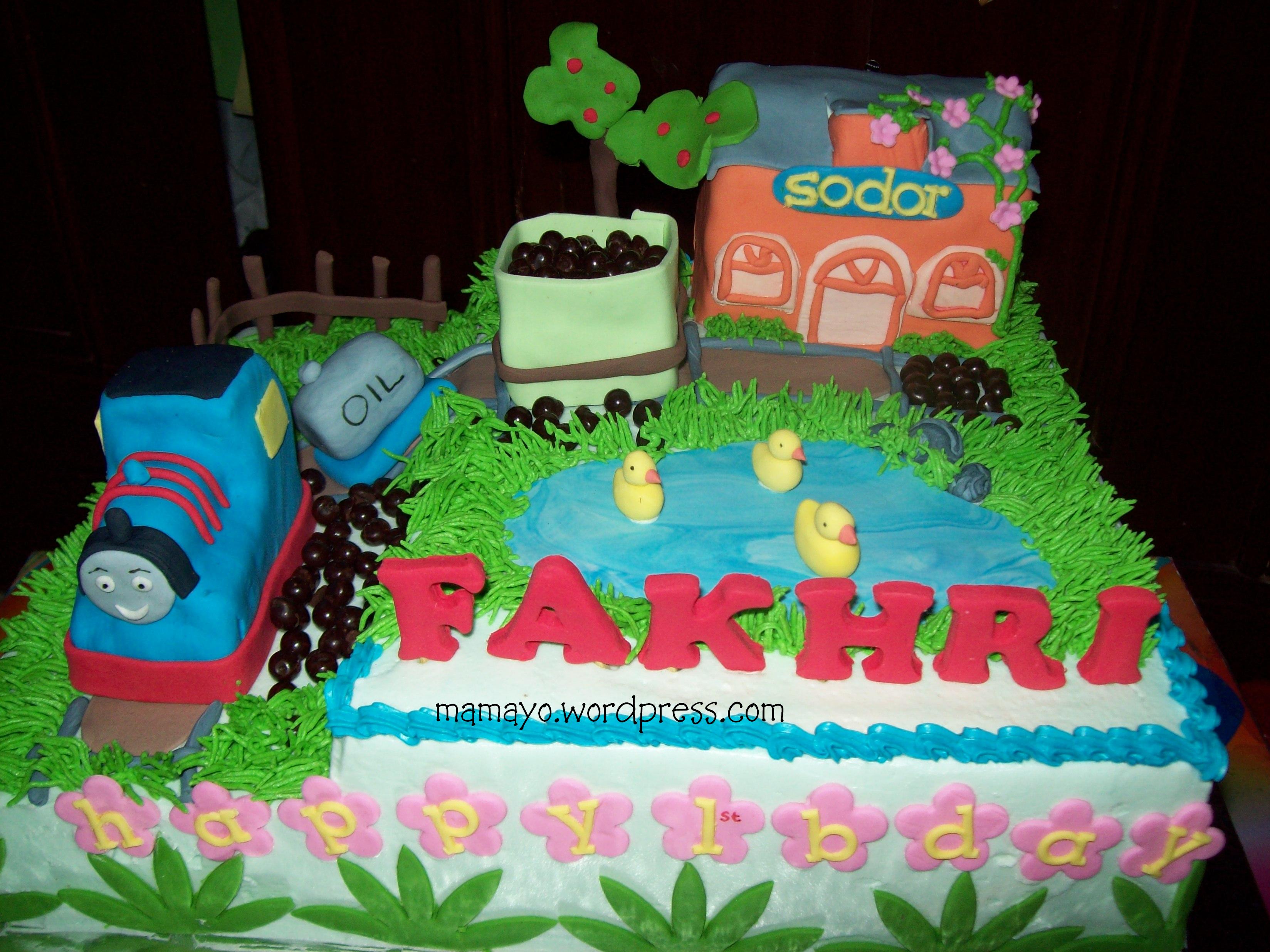 Mama Dini pesen kue ultah Thomas yang mirip seperti kuenya rasya… Tapi kalo mirip banget ya mamayo bosen hehehe… jadinya dipidah aja posisinya… selebihnya mirip hehehe…..