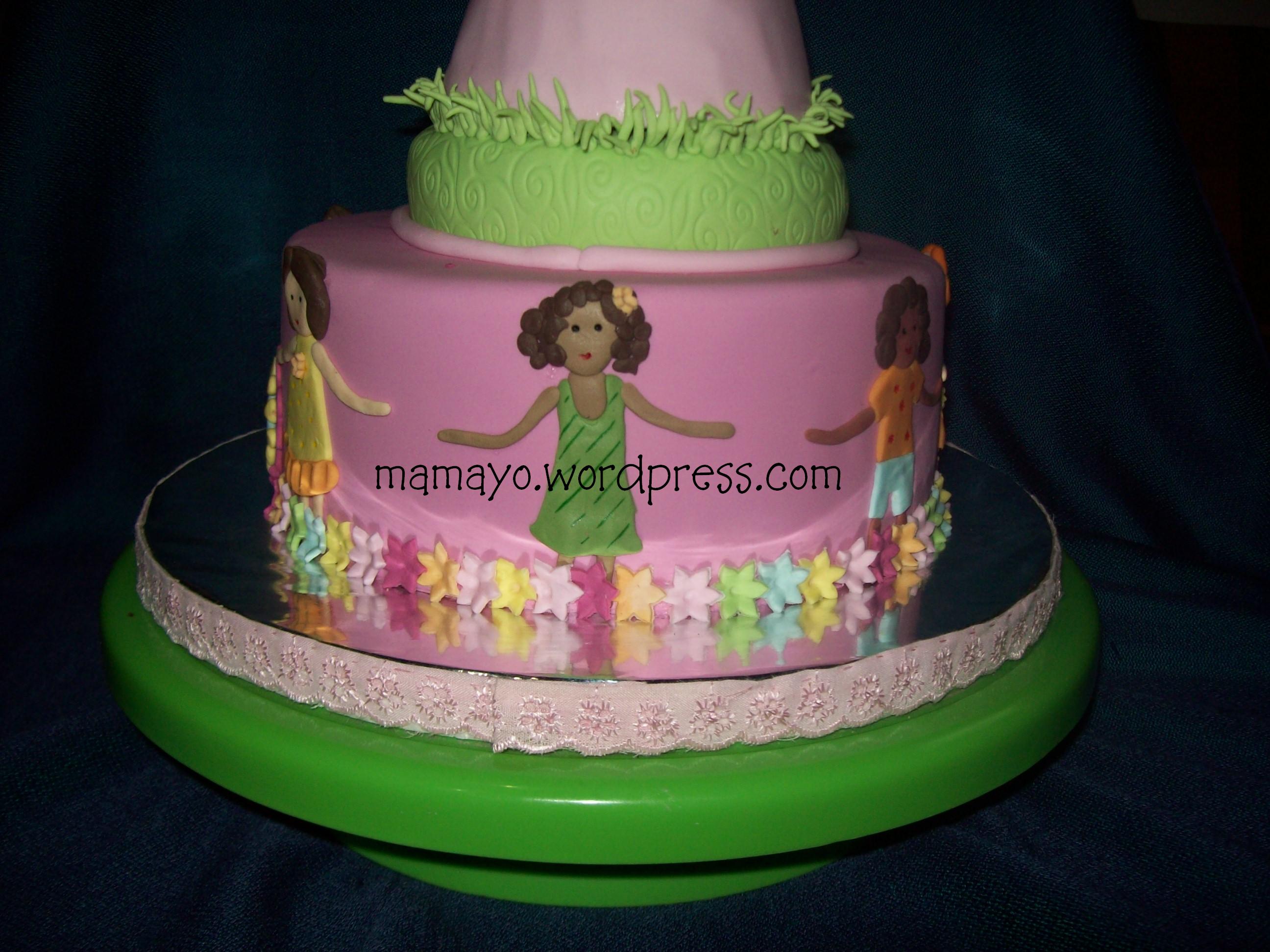 anak yang gandengan tangan di undangan, aku buat melingkar di sekeliling kue-nya..