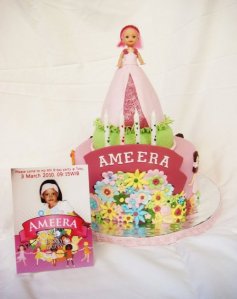 Repeat order kesekian kalinya dari mbak rima… Dan ini kue ameera lagi.. dah 3 kali ultahnya aku bikin kue buat ameera.. kue ini desainnya harus mirip sama undangannya. Dan karena diambil pagi banget, aku nggak sempet bikin foto yang bagus.. foto itu aja, diambil dari fb-nya bunda rima hehehe… nih foto yag pake flash