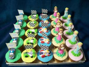 orderan dari bu asri buat bu evy mama farell, minta tema hotwheels ukuran 15 cm cover fondant, dengan warna dasar biru. minta juga cupcakes 50 buah dengan topper 30 mobil polisi, 10 mobil hotwheels, dan 10 princess… nih dia cupcakesnya…