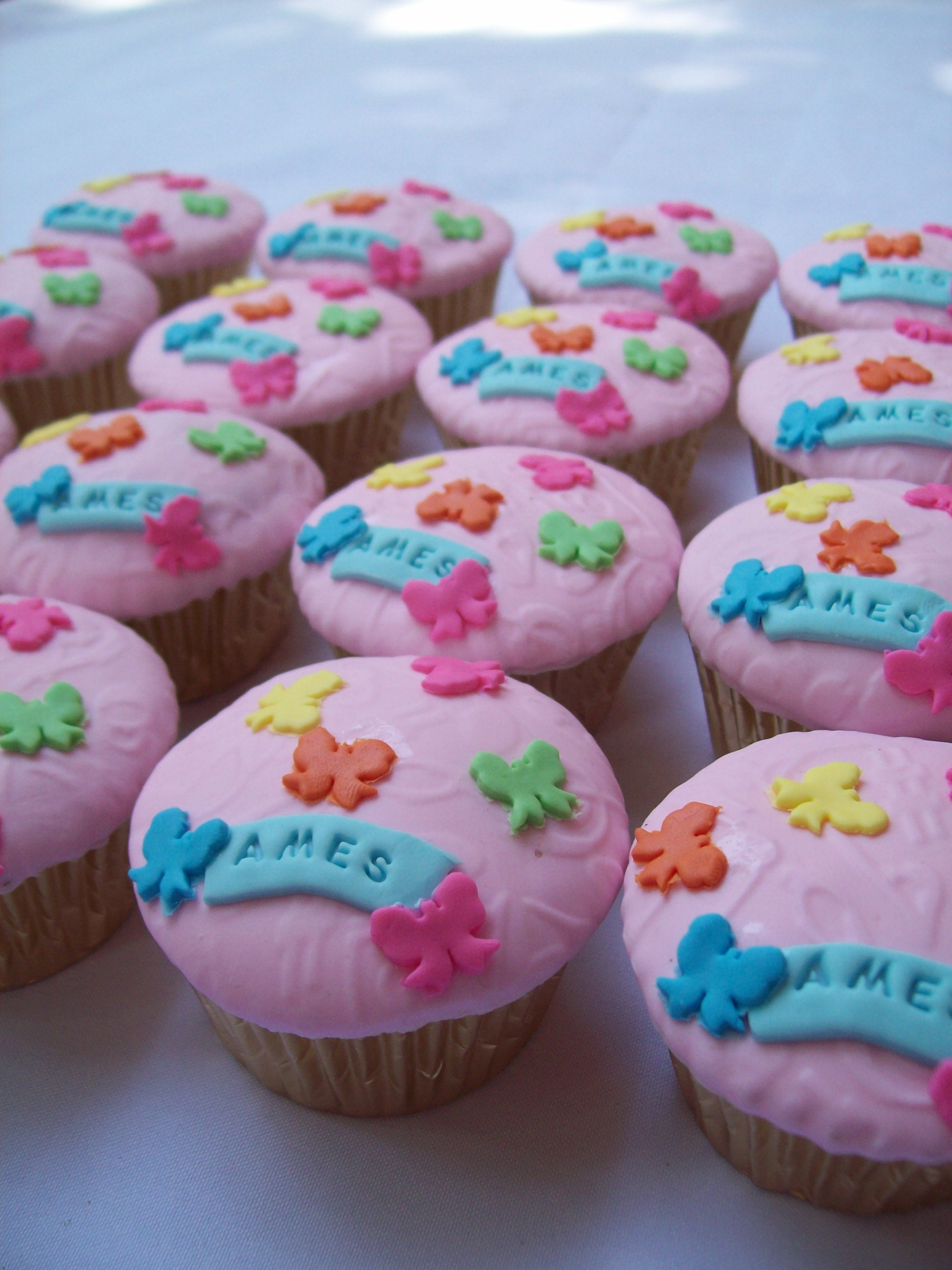 Repeat order dari mbak maria, mama ames.. Untuk ultah yang lalu pesan cupcake dengan tema princess. tapi kali ini pesan lebih sederhana untuk dirayakan di dua tempat. Yang pertama di sekolah dan yang kedua di tempat les balet. Cupcake pertama dicover fondant dengan tulisan nama dan pita kecil-kecil. Untuk yang kedua pake buttercream. yang cowok pakai foto thomas, yang cewek kupu dan bunga kecil-kecil aja