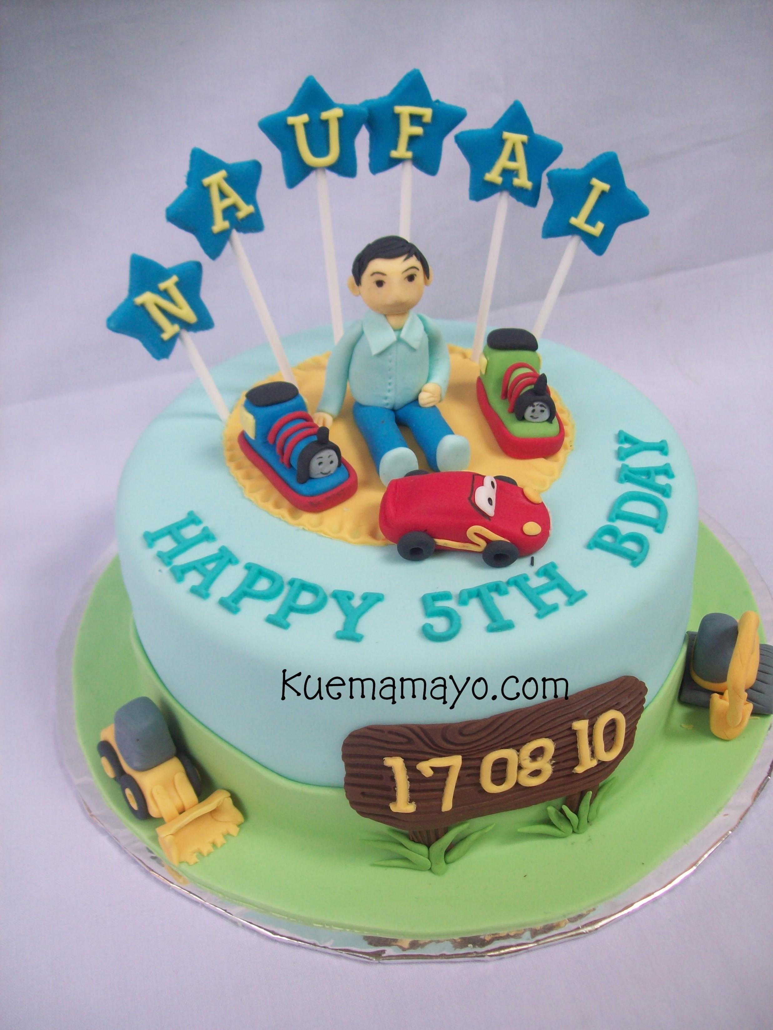 Pesanan ibu Dita di Condet untuk ultah naufal putranya, maunya kuenya seperti kue eldin ada thomas and friends, mc queen dan alat berat… Kue uk 20 dengan rasa coklat dan figur naufal diatasnya. untuk cupcakesnya ibu Dita memesan cupcakes in the night garden