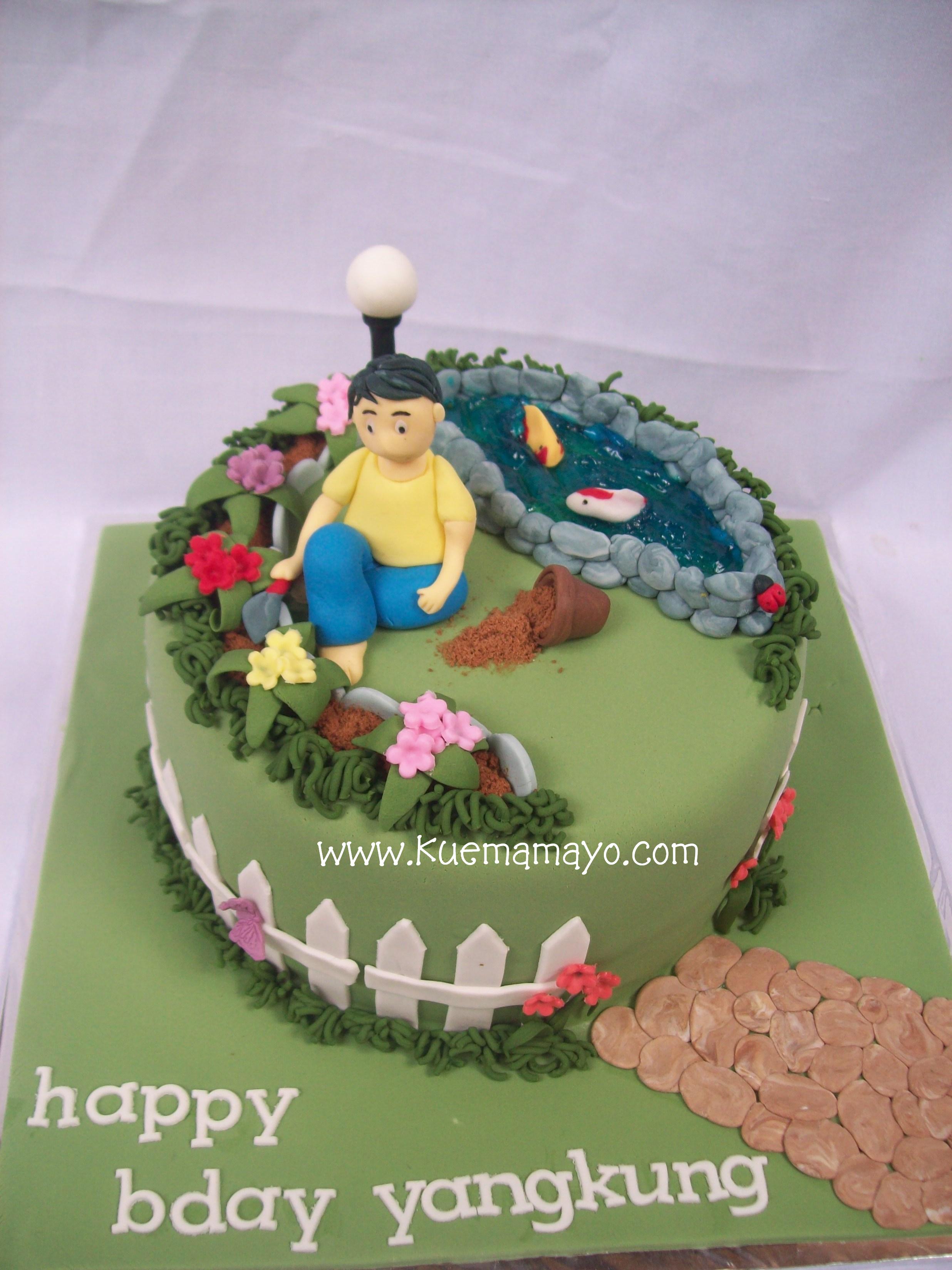 Pesenan Melina di Tangerang… MAu kirim kue ultah buat papanya. Cluenya papa suka olah raga, bola ama f1. Mau dikasih kue bola apa F1 ya mel…. mel bingung. Trus dia bilang, Papaku juga suka berkebun… Oh oke… kue berkebun aja ya hehehehe……… beginilah jadinya.