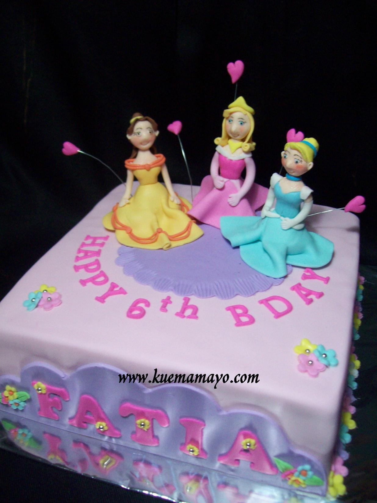 Pesanan Ibu Erica untk putrinya Fatia. Cake berukuran 20×20 cm rasa coklat dengan dekorasi fondant dan figur juga dari fondant.