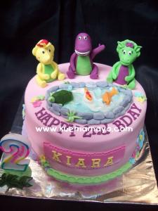 kue ultah yg karakter barney ini , harganya brp?sekalian detailnya dong (jenis dan ukuran kuenya)