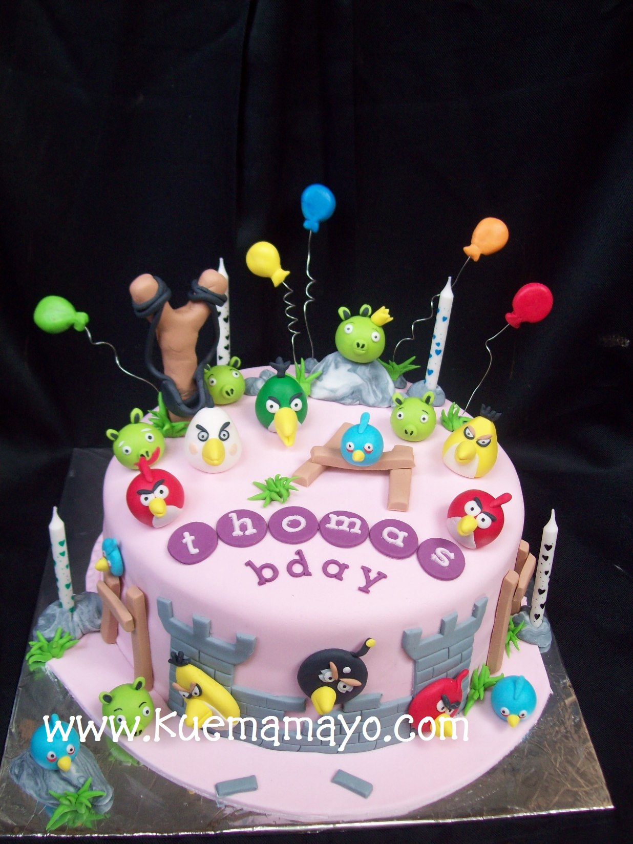hehehe… nih kue bener-bener buat ngerjain pak bosnya…minta kasih warna pink, anak kecil banget dan balon-balon