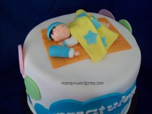 kue ini orderan kakak untuk mama temennya yang baru aja ngelahirin adik laki-laki. Mintanya sih kuenya ada adek bayinya….. Mamayo bikinin deh, khusus buat kakak biyya tersayang……
