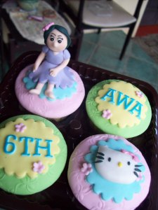 Cupcakes ini buat ultah kakak biyya, maafin mama ya kakk… cuma bisa bikinin cupcakes, soalnya orderan lagi fulll…. Tapi mama nggak kepengen anak mama kena yang namanya anak bakul kue, nggak punya kue ulang tahun… jadi secepat kilat udah mama bikinin nih cupcakes yang kebetulan juga cuma tinggal 8…