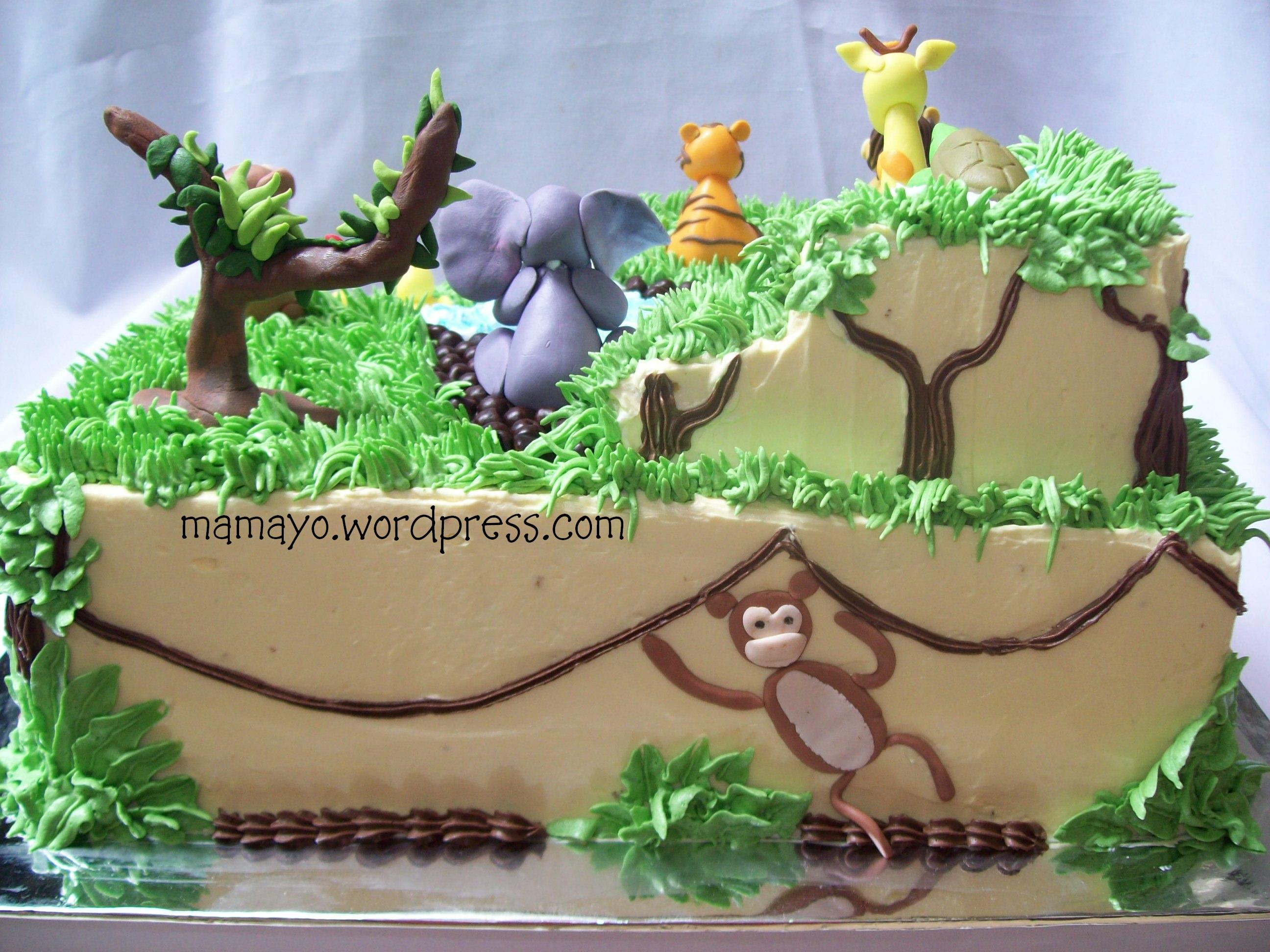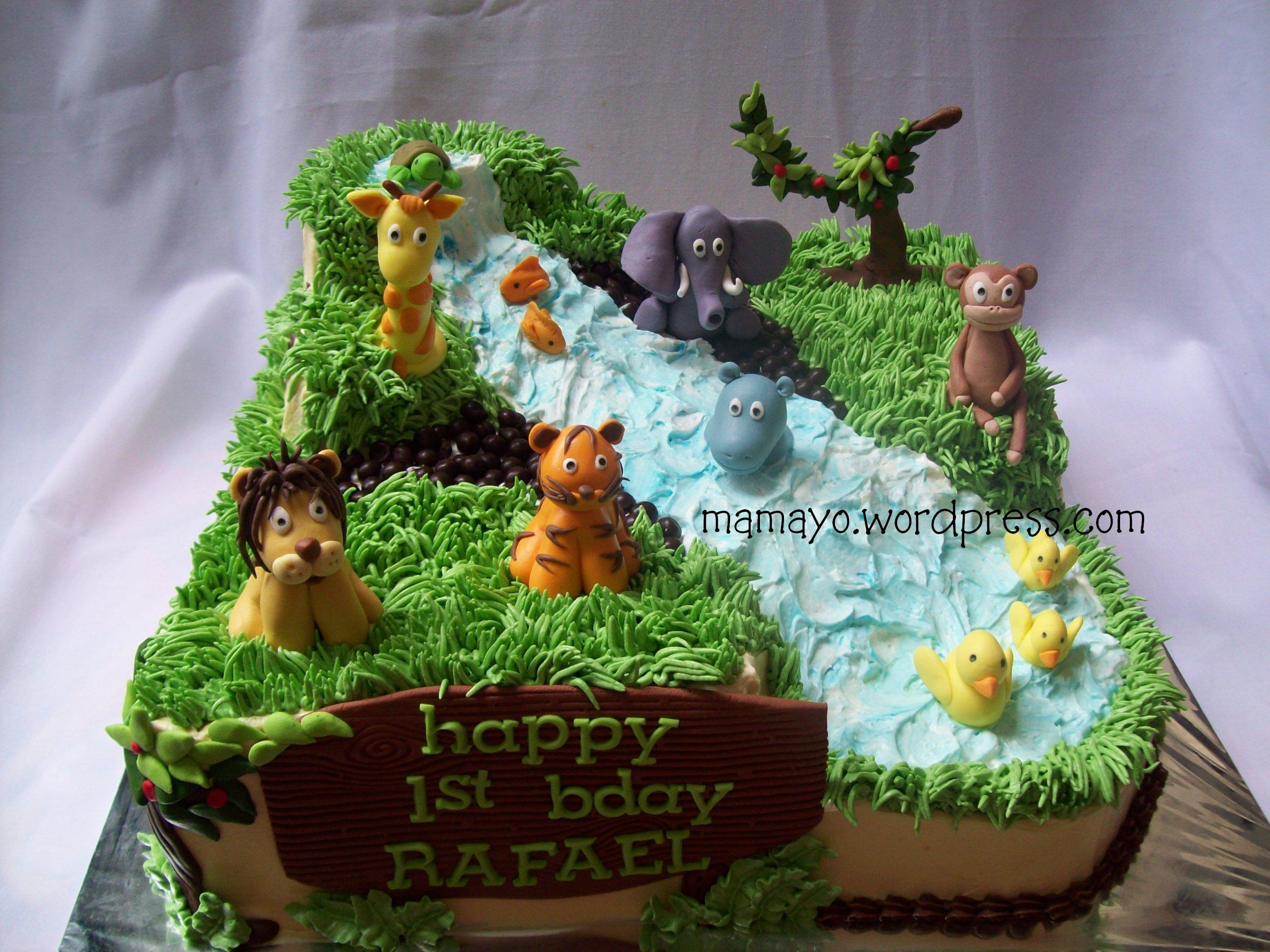 2 02 2010orderan Ibu Sigrit untuk ultah anaknya Rafael, ibu sigrit udah order jauh-jauh hari, minta kue happy jungle, tapi nggak cover cake pake fondant dan coklat, dan milih pake BC aja. Nah begitulah jadinya, cake cover BC dengan figurinnya aja dari fondant.