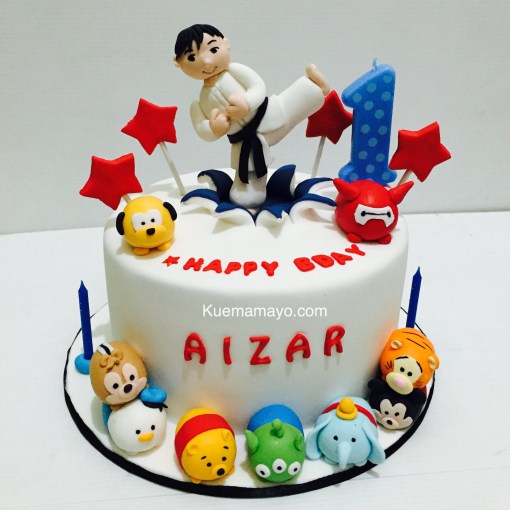 Kue terbuat dari ukuran 24 dan 18 cm. Tiang pilar dari dummy. Menggunakan mainan karet kualitas baik