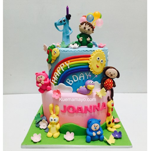 Karakter menggunakan figurin dari fondant yang bisa dimakan.